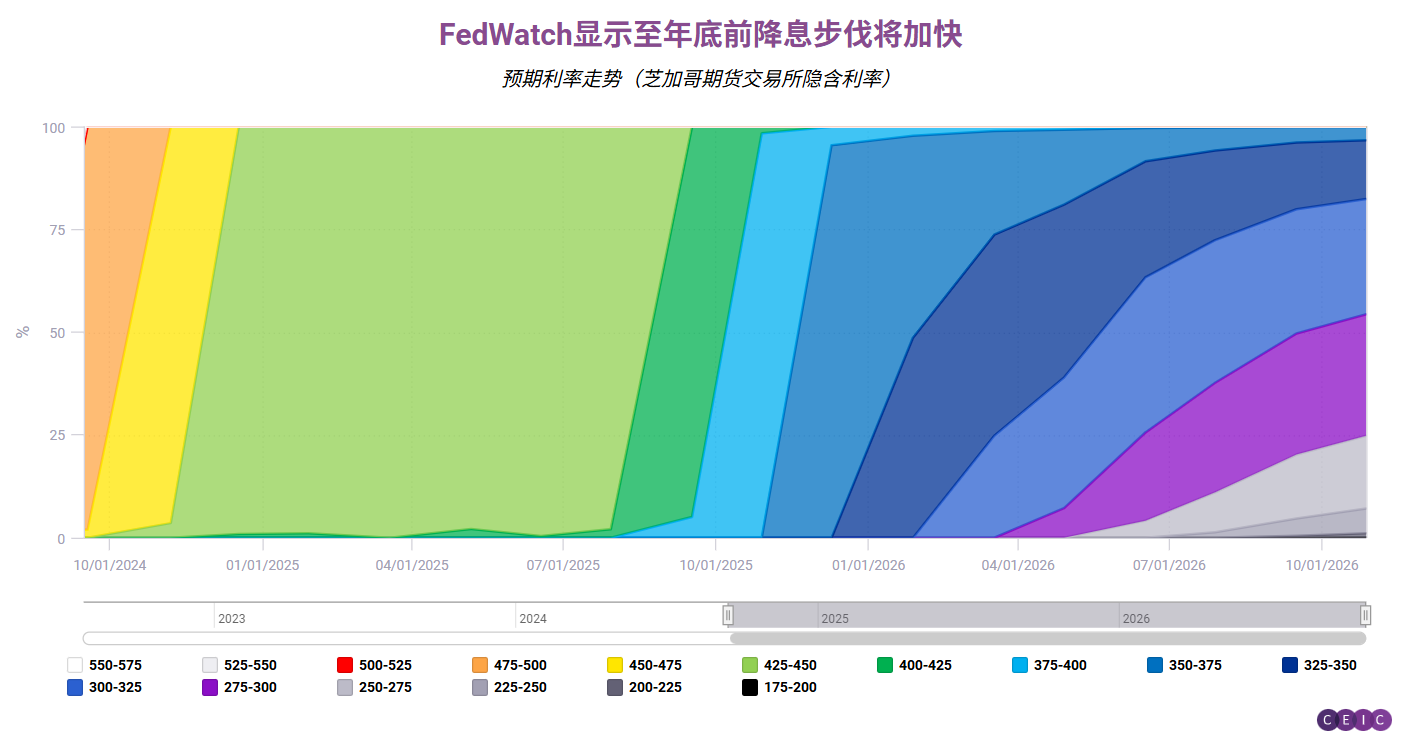 截至9月25日,市场隐含概率显示,美联储所暗示的 “再降息 50 个基点” 的可能性为73%。